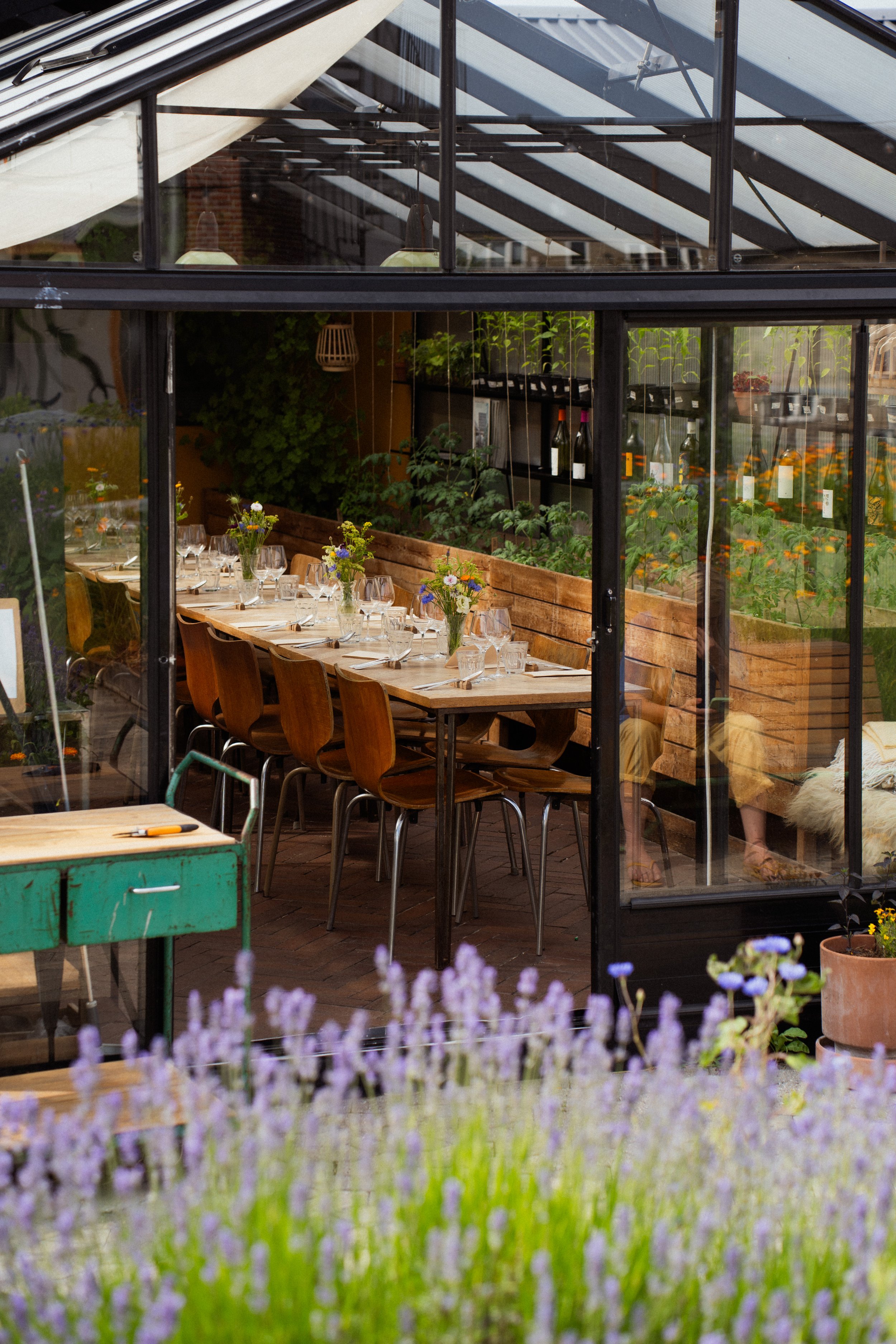 I vores drivhus finder du Gro Spiseri, som danner rammen om vores langbords middage, men også for private arrangementer. Vi har plads til max 25 gæster omkring langbordet og hele taget kan bookes pricat.